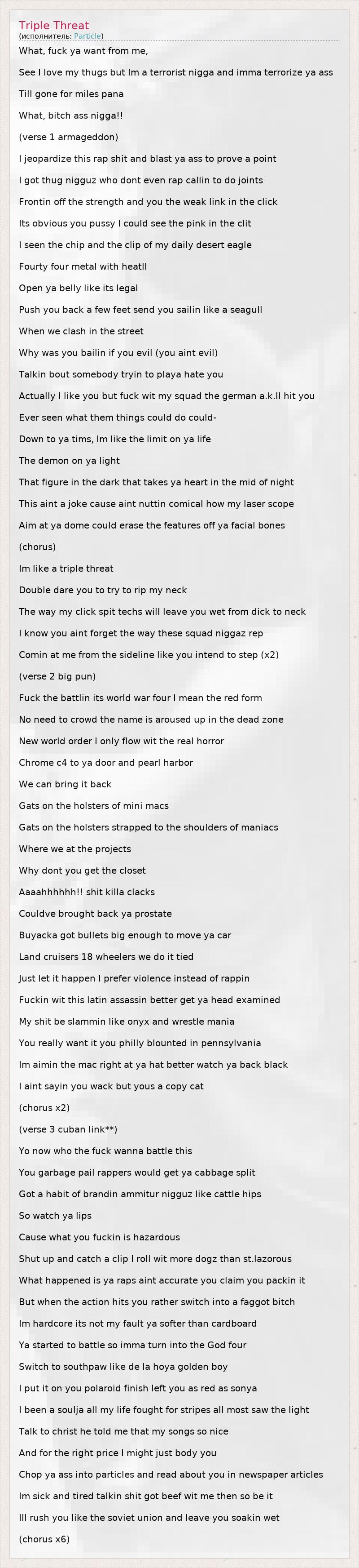 А как ты думаешь, о чем песня "Triple Threat" ?