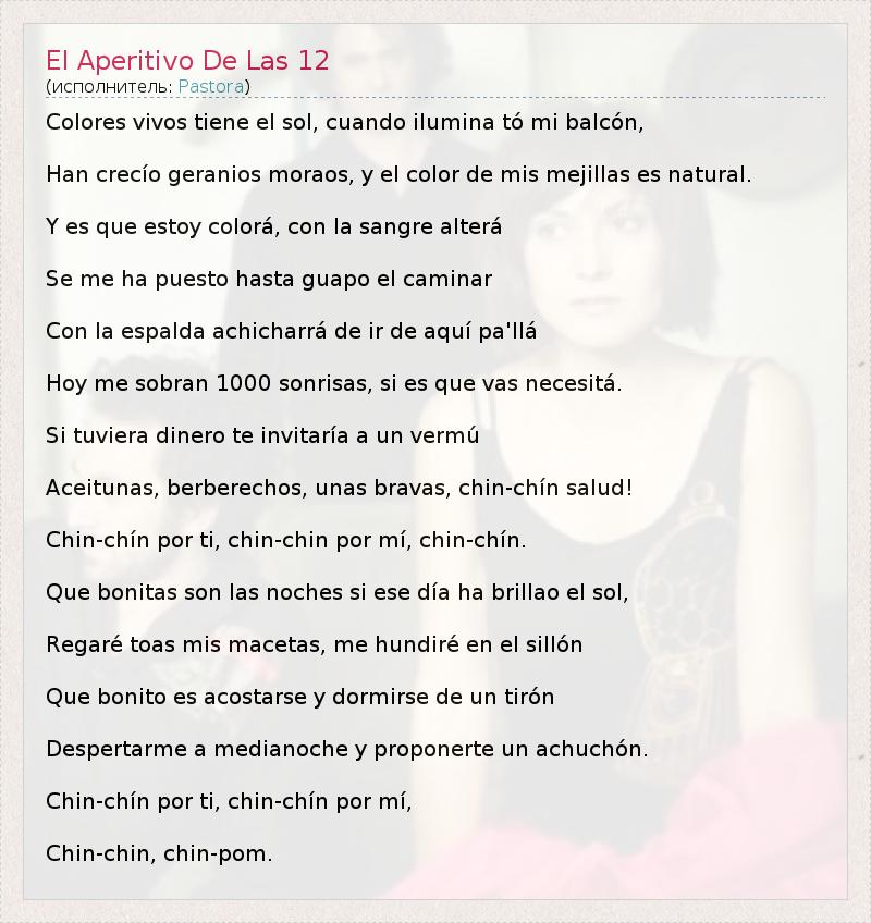 А как ты думаешь, о чем песня "El Aperitivo De Las 12" ?