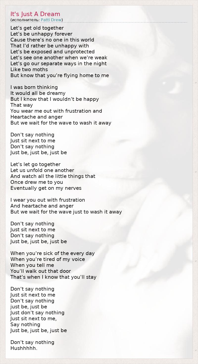 А как ты думаешь, о чем песня "It's Just A Dream" ?