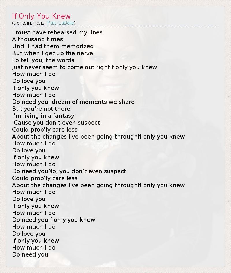 А как ты думаешь, о чем песня "If Only You Knew" ?