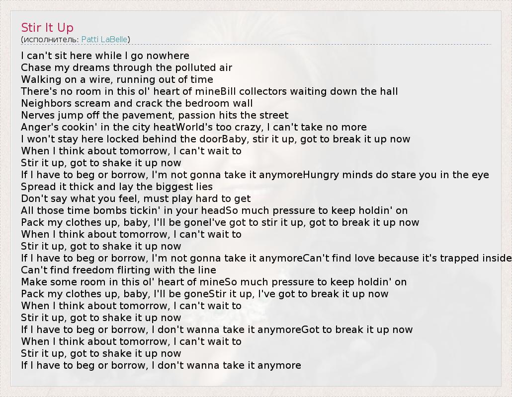А как ты думаешь, о чем песня "Stir It Up" ?