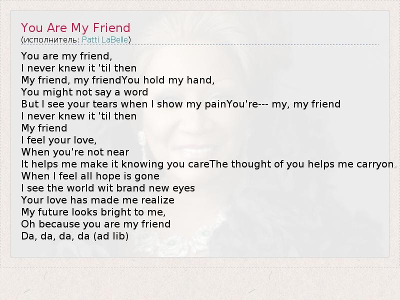 А как ты думаешь, о чем песня "You Are My Friend" ?