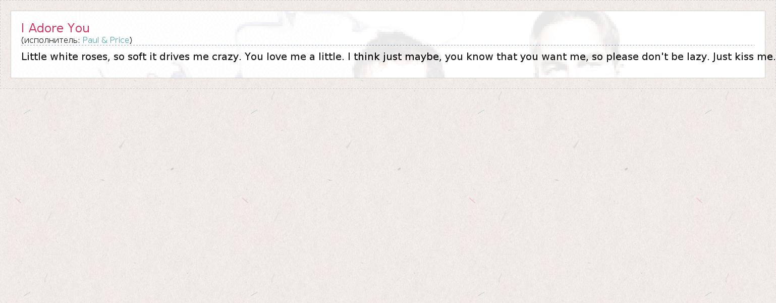 Little white roses, so soft it drives me crazy. You love me a little. I think just maybe, you know that you want me, so please don't be lazy. Just kiss me.