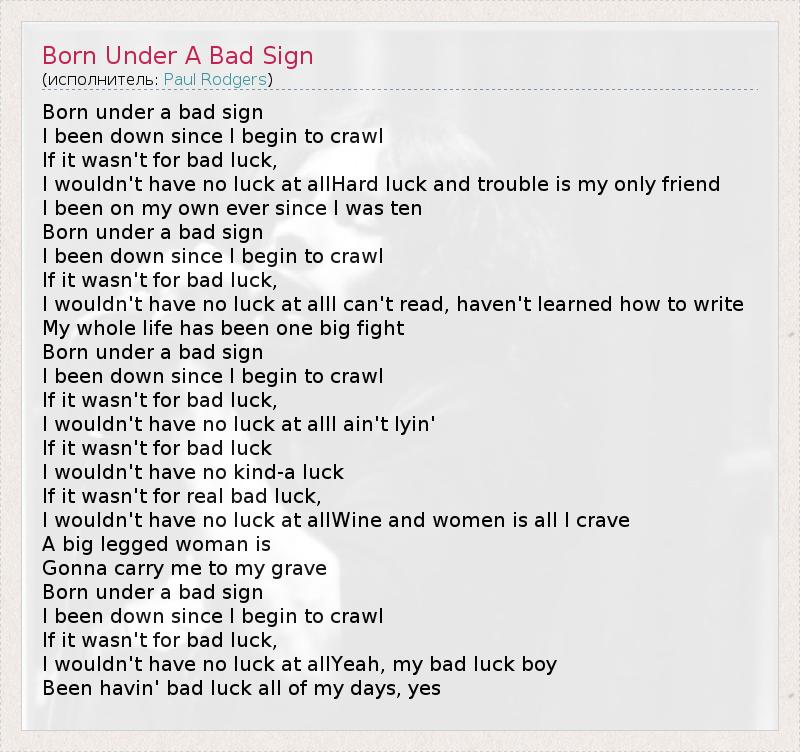 А как ты думаешь, о чем песня "Born Under A Bad Sign" ?