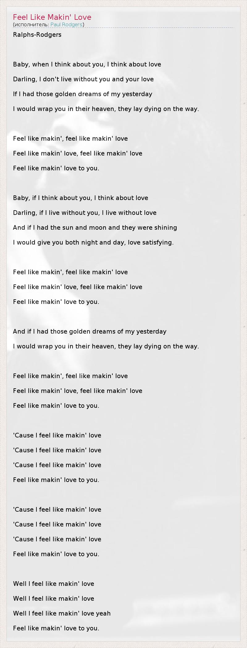 А как ты думаешь, о чем песня "Feel Like Makin' Love" ?
