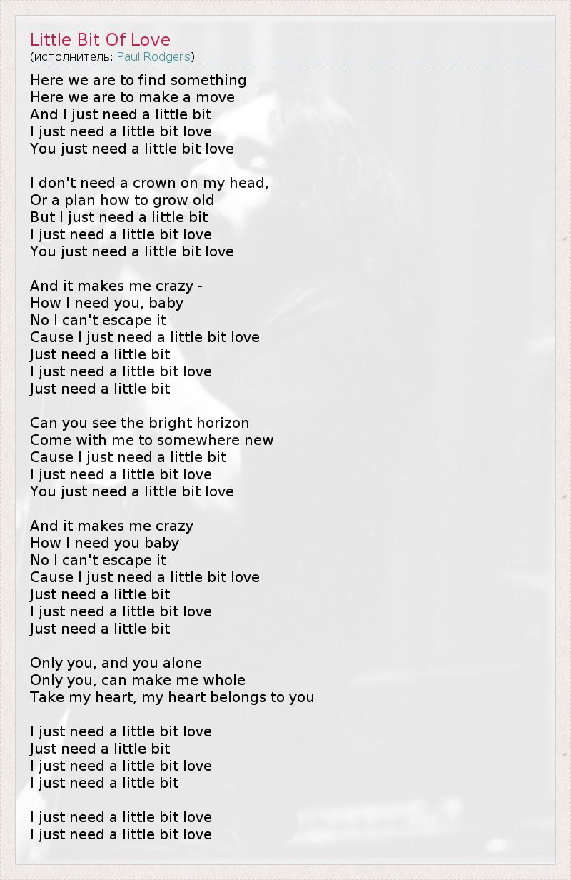 А как ты думаешь, о чем песня "Little Bit Of Love" ?