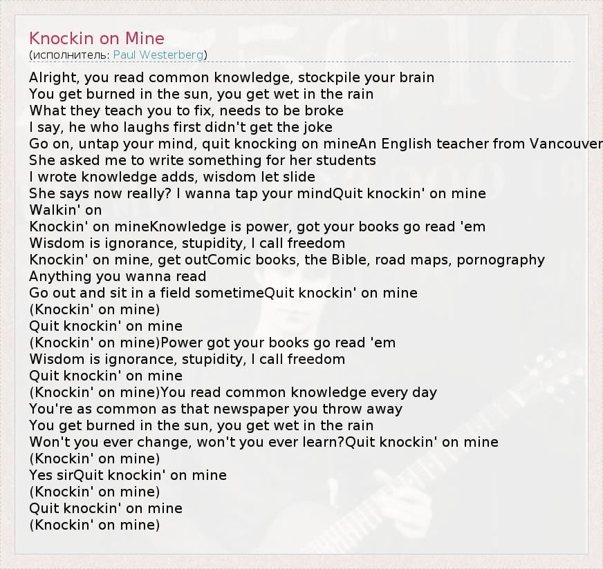А как ты думаешь, о чем песня "Knockin on Mine" ?