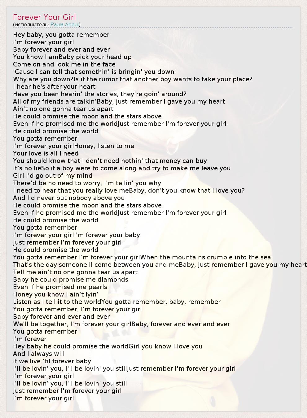 А как ты думаешь, о чем песня "Forever Your Girl" ?