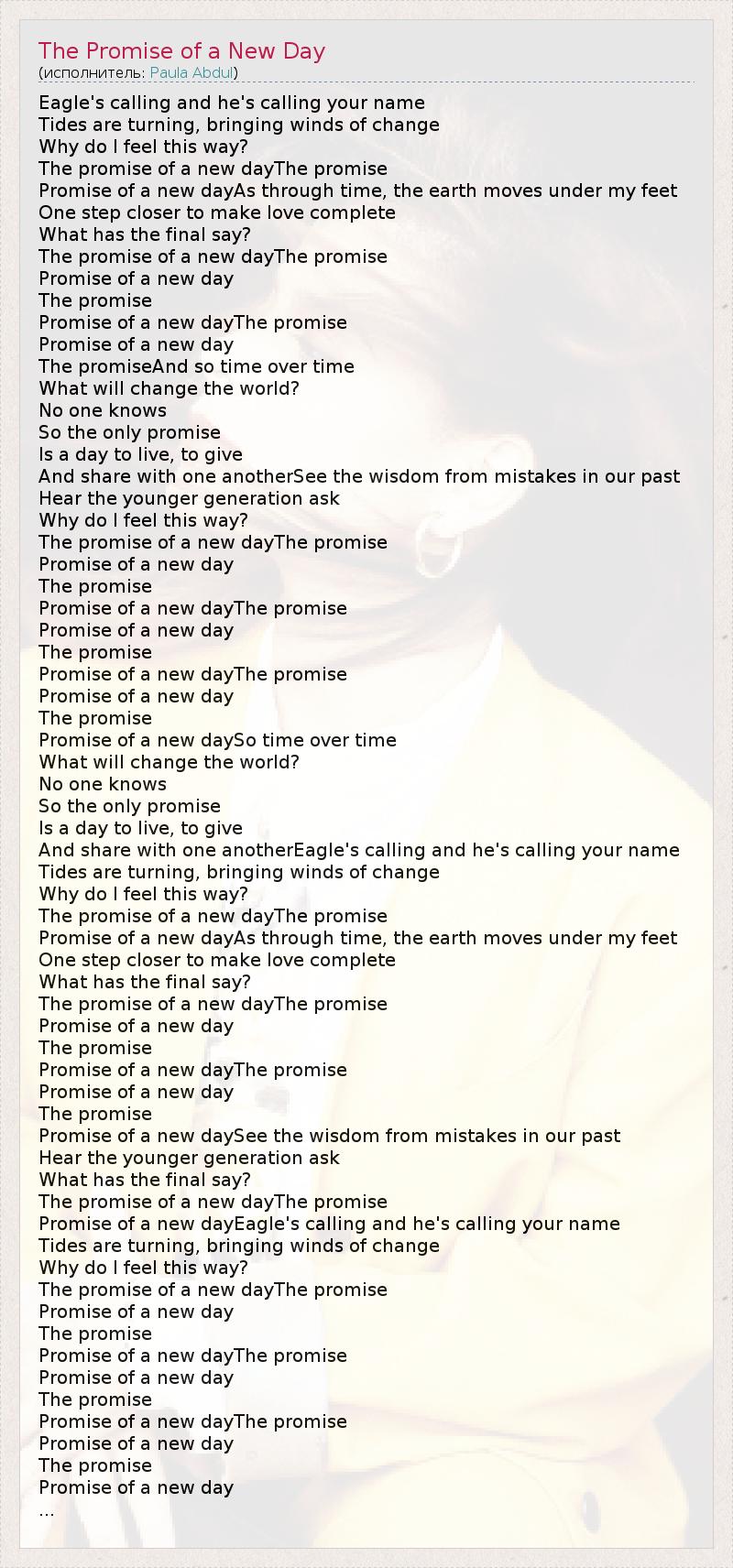 ГлавнаяИсполнителиPaula AbdulThe Promise of a New Day