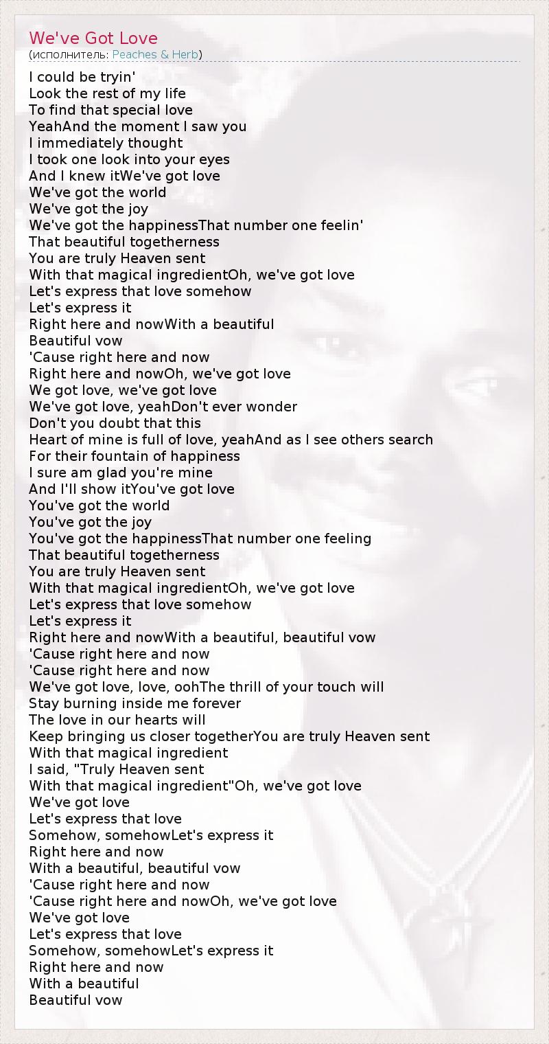 А как ты думаешь, о чем песня "We've Got Love" ?