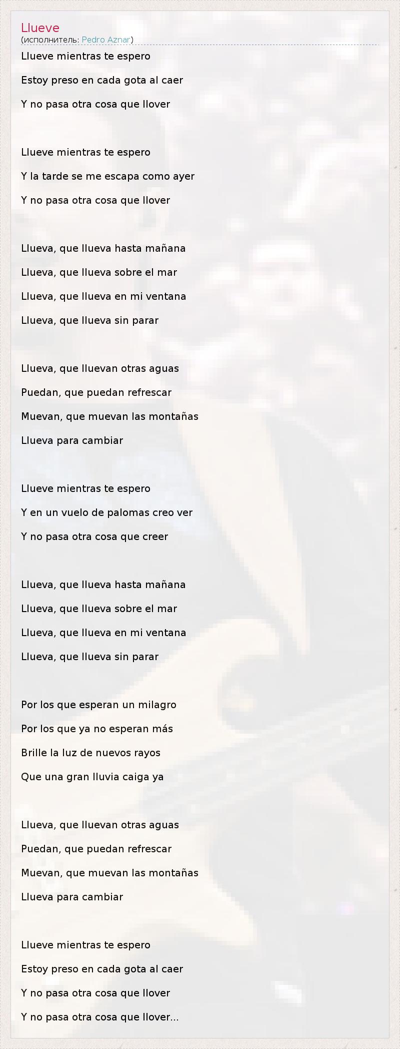 Это интересно:Pedro Aznar (родился 23 июля 1959) - аргентинский музыкант. Известен приданием джазового звучания рок-песням, в основном благодаря использованию безладовой бас-гитары, в чём проявляется сильное влияние Джако Пасториуса.Он также является важной фигурой в аргентинской рок-музыке - середине 70-х работал с такими группами, как ALAS и Pastoral. В 1978 году Педро стал участником Seru Giran, одной и самых влиятельных... продолжение