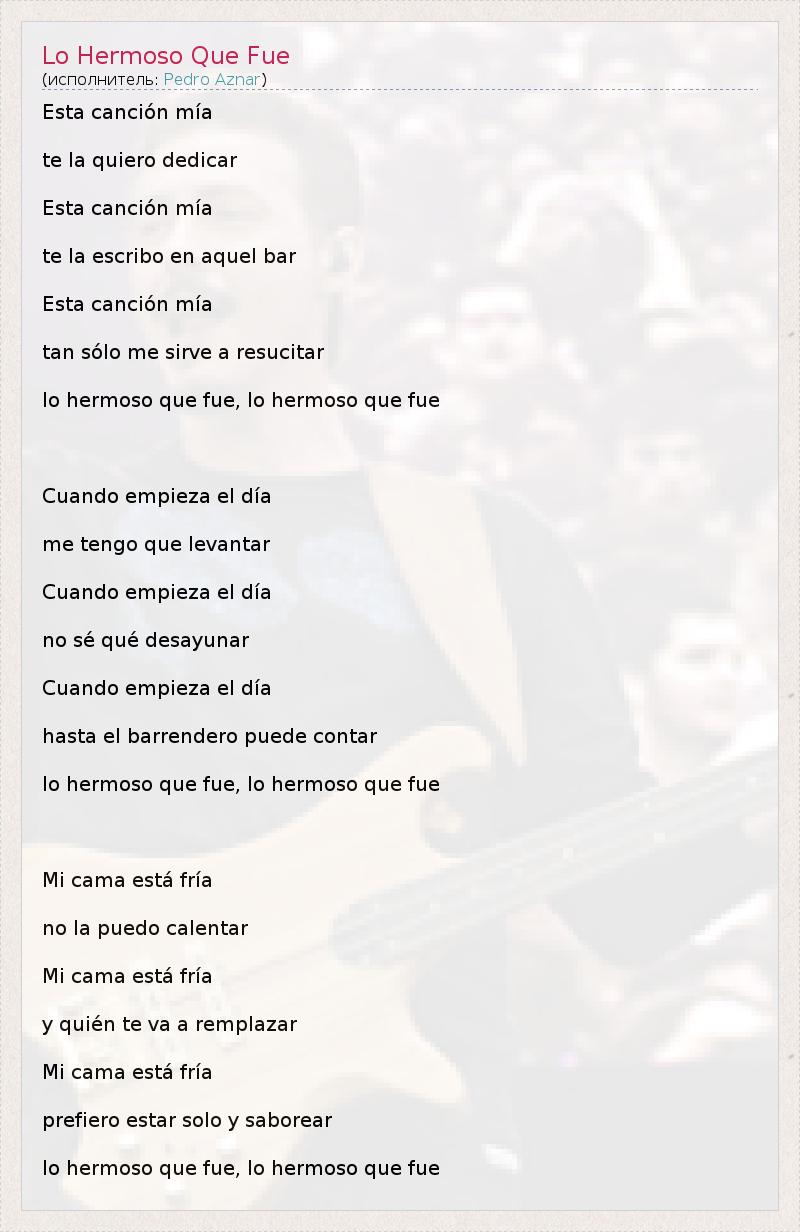 А как ты думаешь, о чем песня "Lo Hermoso Que Fue" ?