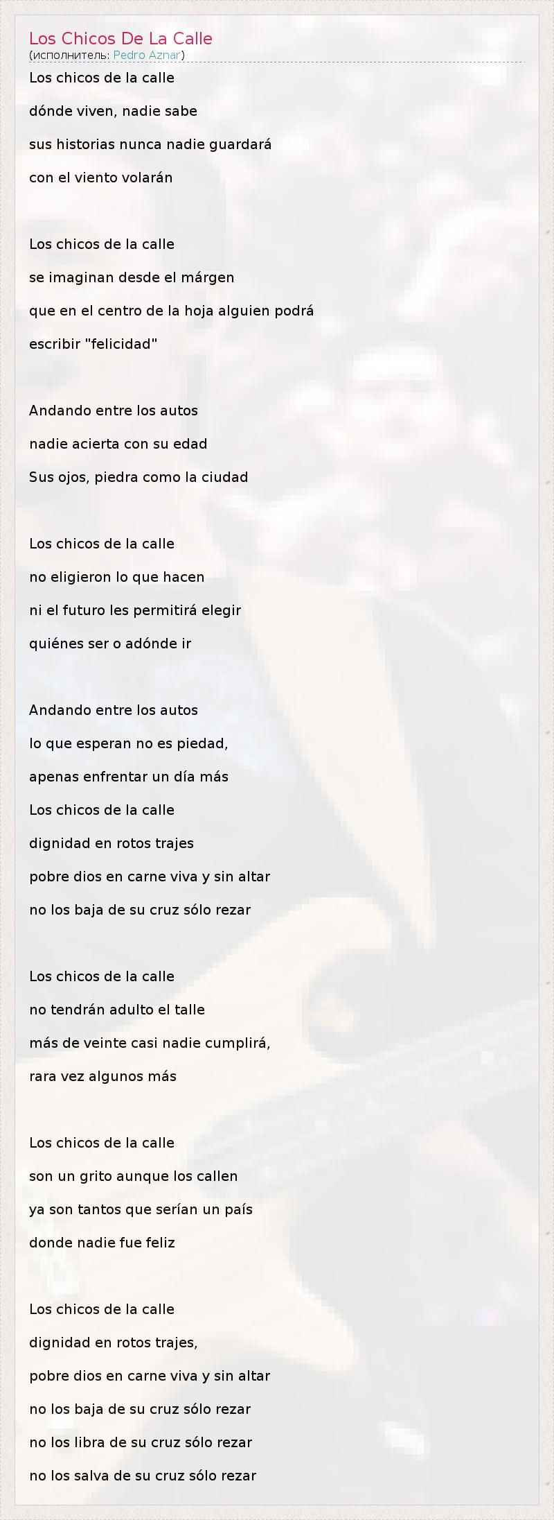 А как ты думаешь, о чем песня "Los Chicos De La Calle" ?