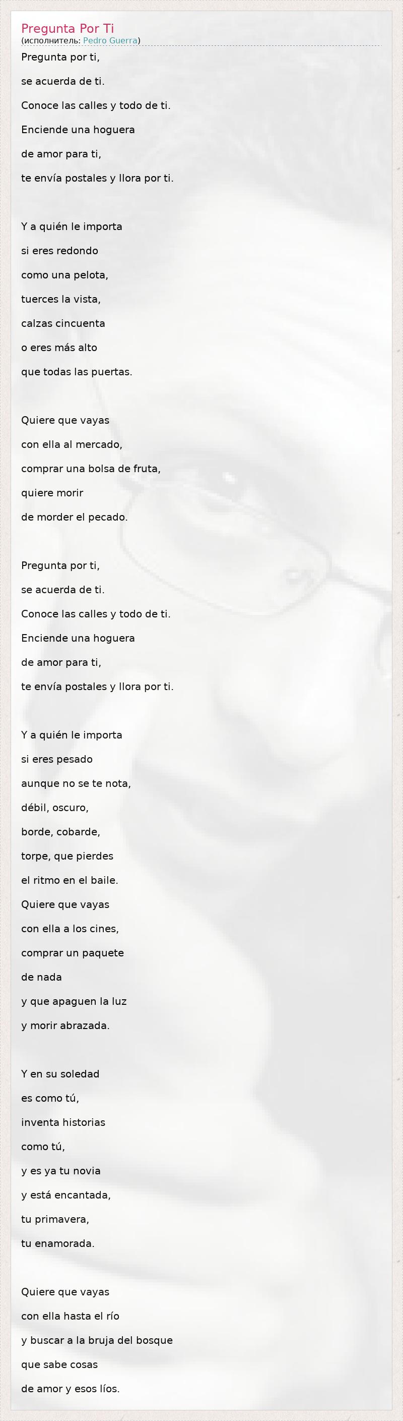 А как ты думаешь, о чем песня "Pregunta Por Ti" ?