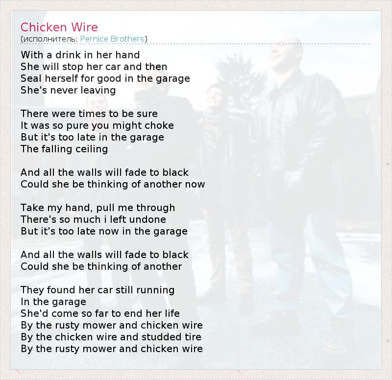 А как ты думаешь, о чем песня "Chicken Wire" ?
