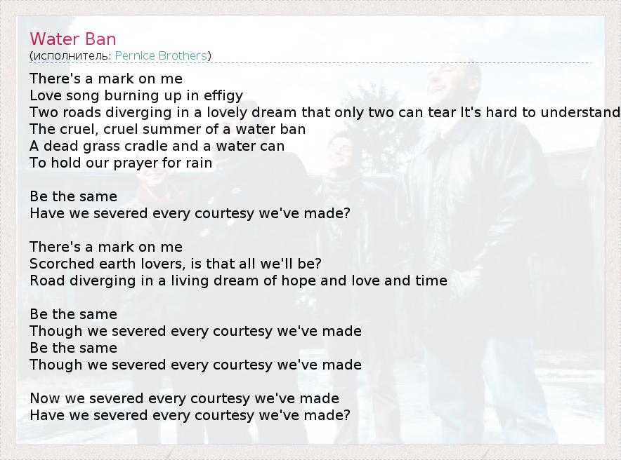 А как ты думаешь, о чем песня "Water Ban" ?