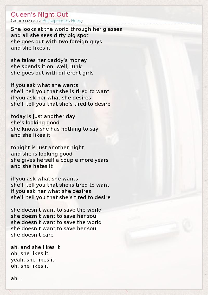 А как ты думаешь, о чем песня "Queen's Night Out" ?