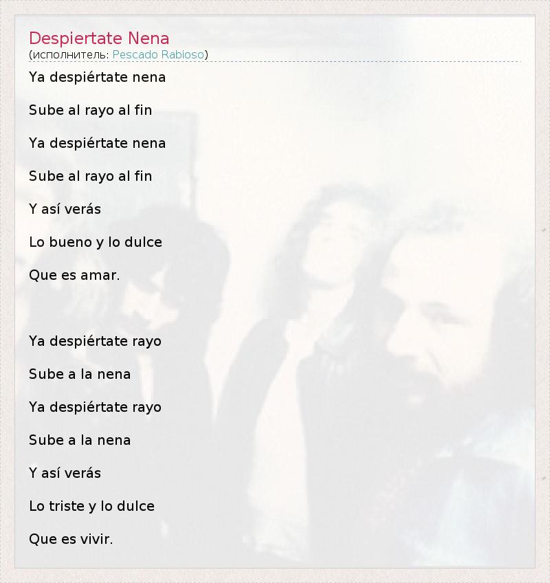 А как ты думаешь, о чем песня "Despiertate Nena" ?
