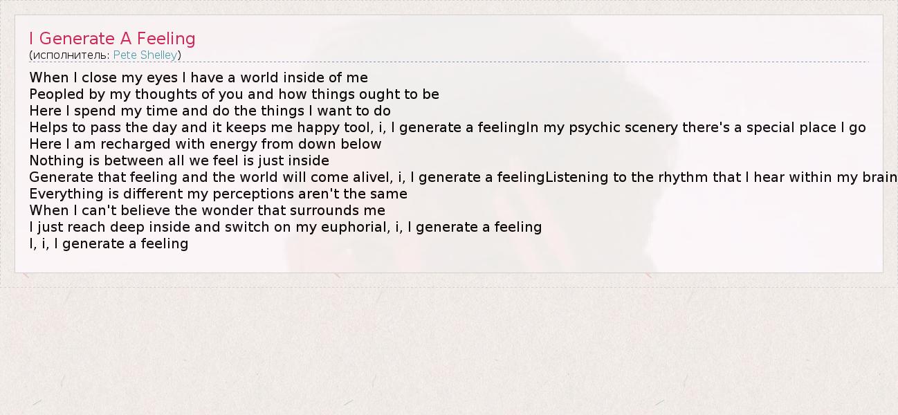 А как ты думаешь, о чем песня "I Generate A Feeling" ?