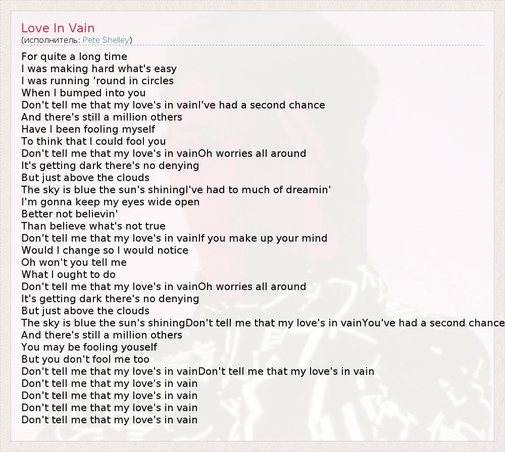 А как ты думаешь, о чем песня "Love In Vain" ?