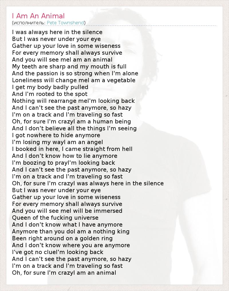 А как ты думаешь, о чем песня "I Am An Animal" ?