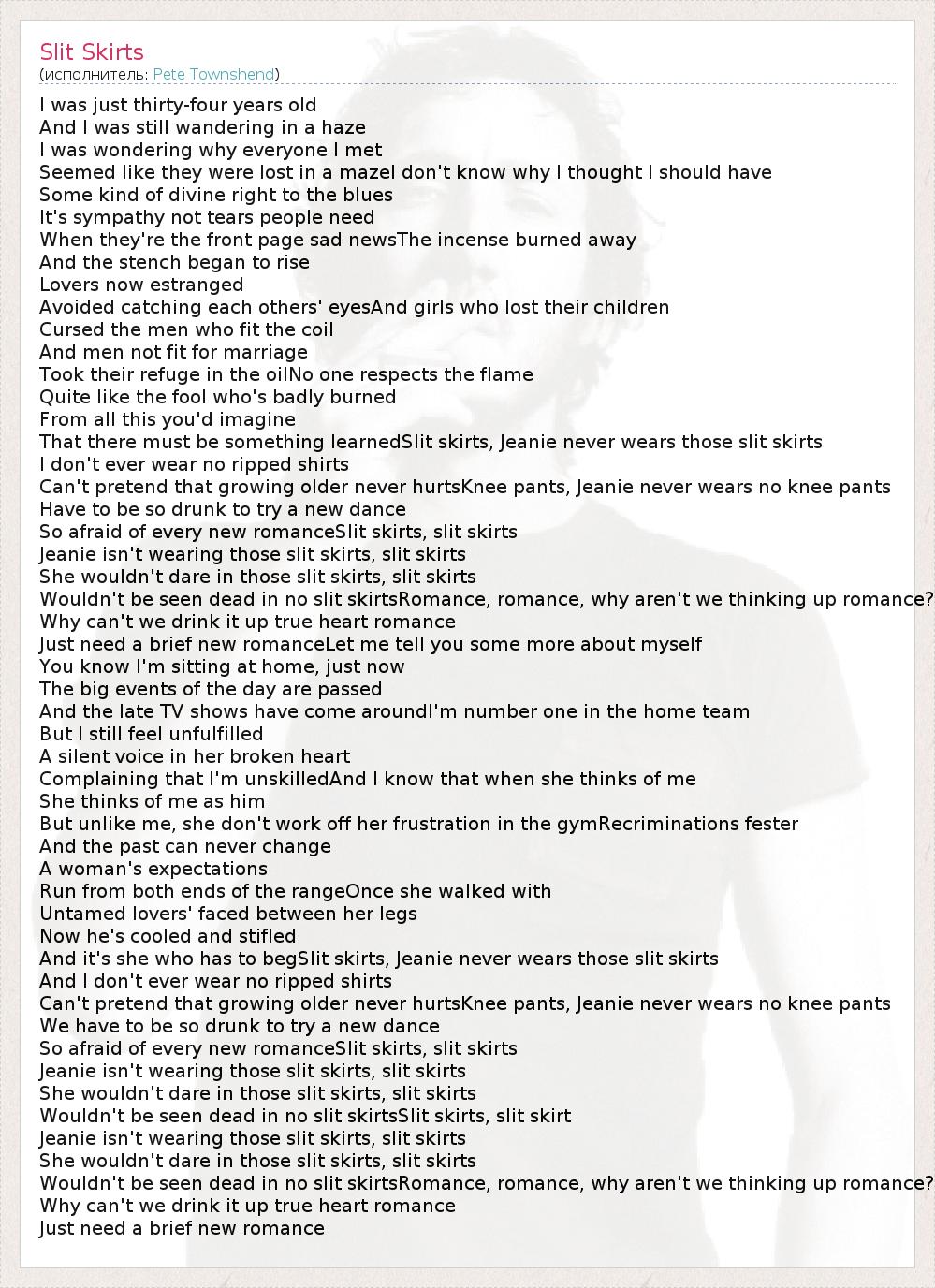 А как ты думаешь, о чем песня "Slit Skirts" ?