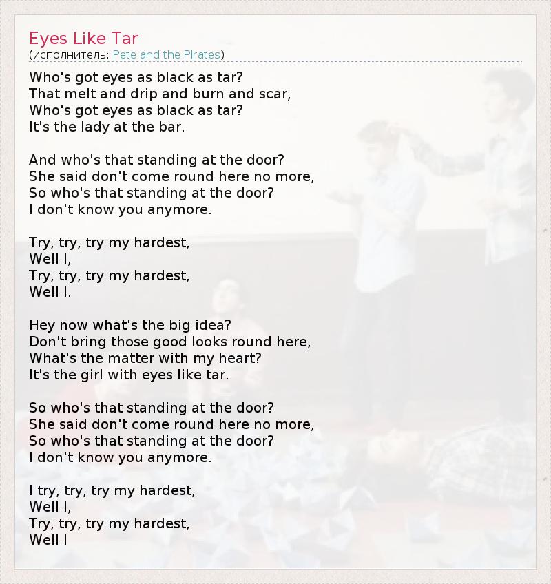 А как ты думаешь, о чем песня "Eyes Like Tar" ?