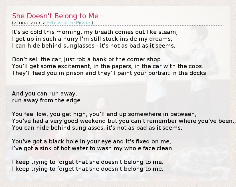 А как ты думаешь, о чем песня "She Doesn't Belong to Me" ?