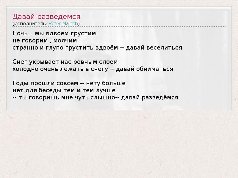 ГлавнаяИсполнителиPeter NalitchДавай разведёмся