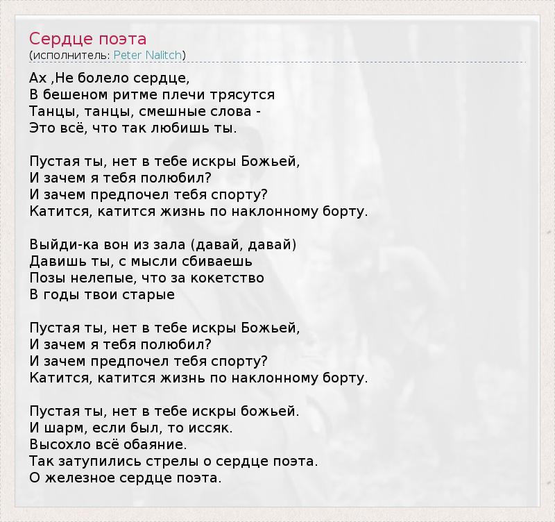 А как ты думаешь, о чем песня "Сердце поэта" ?
