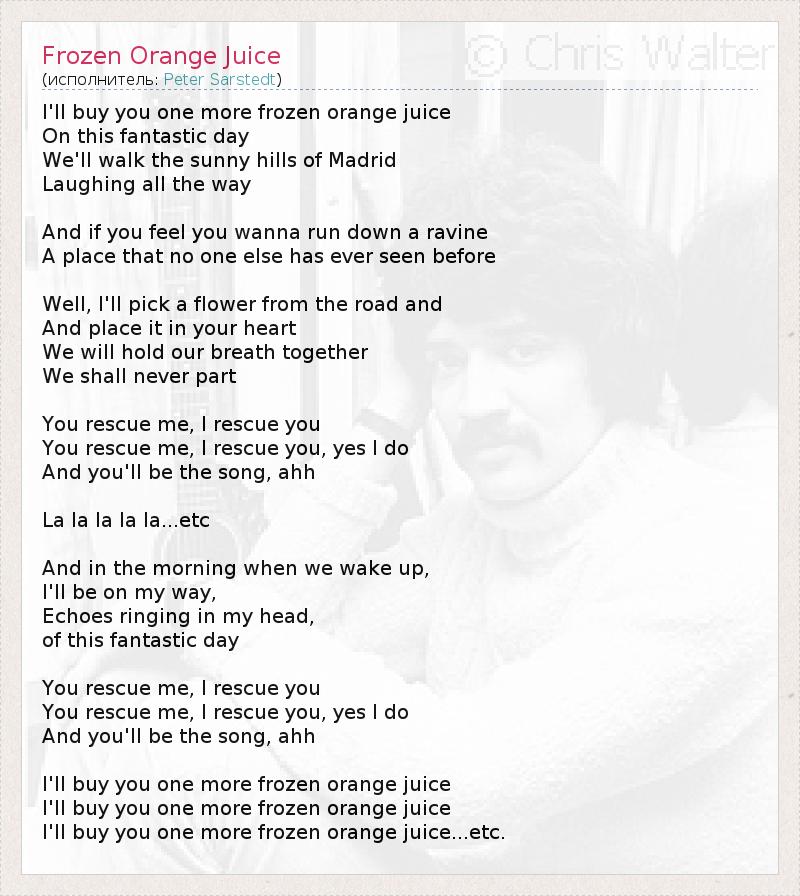 А как ты думаешь, о чем песня "Frozen Orange Juice" ?