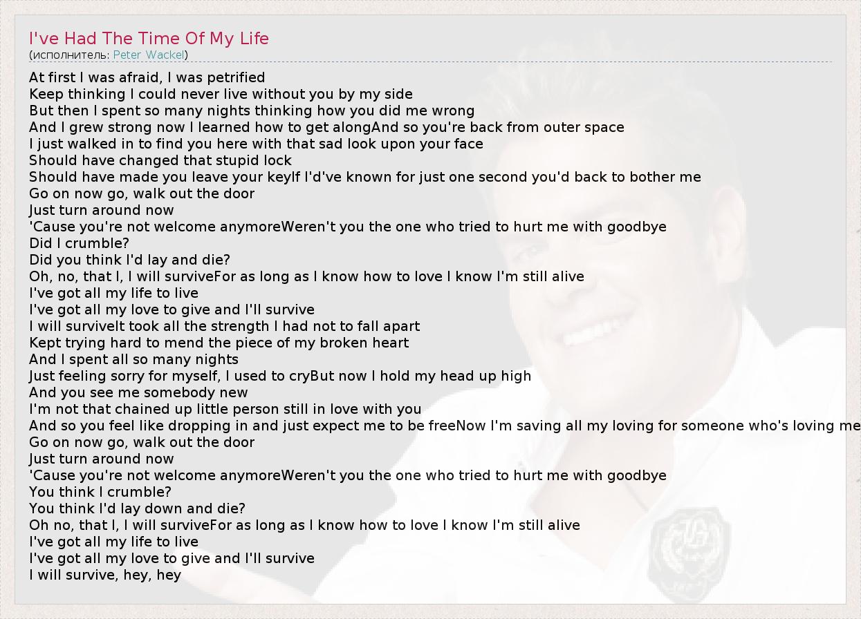 ГлавнаяИсполнителиPeter WackelI've Had The Time Of My Life