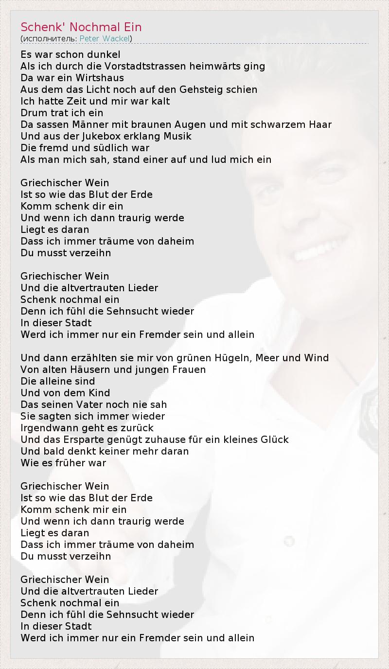 А как ты думаешь, о чем песня "Schenk' Nochmal Ein" ?