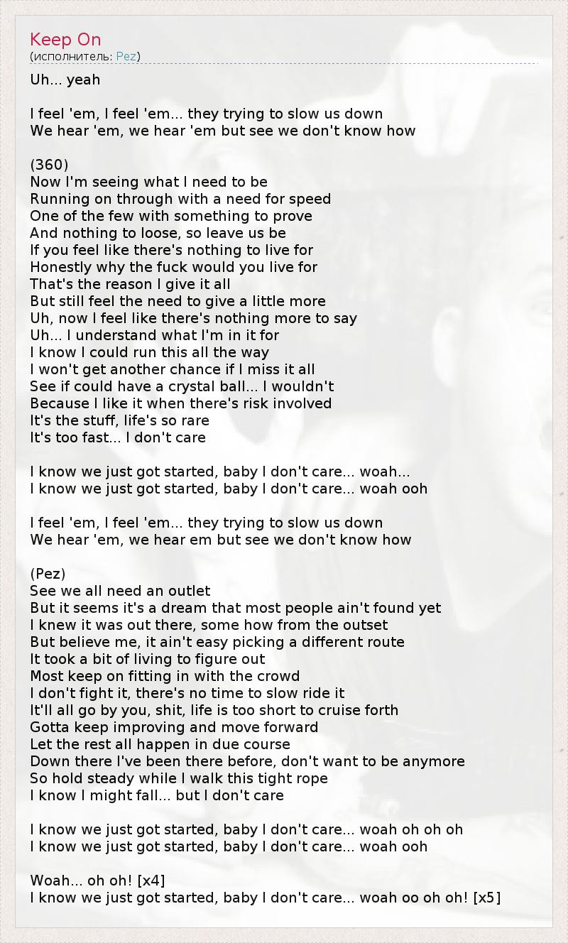 Я знаю, что мы только что начали, детка, я не забочусь ... воах оо о о! [X5]