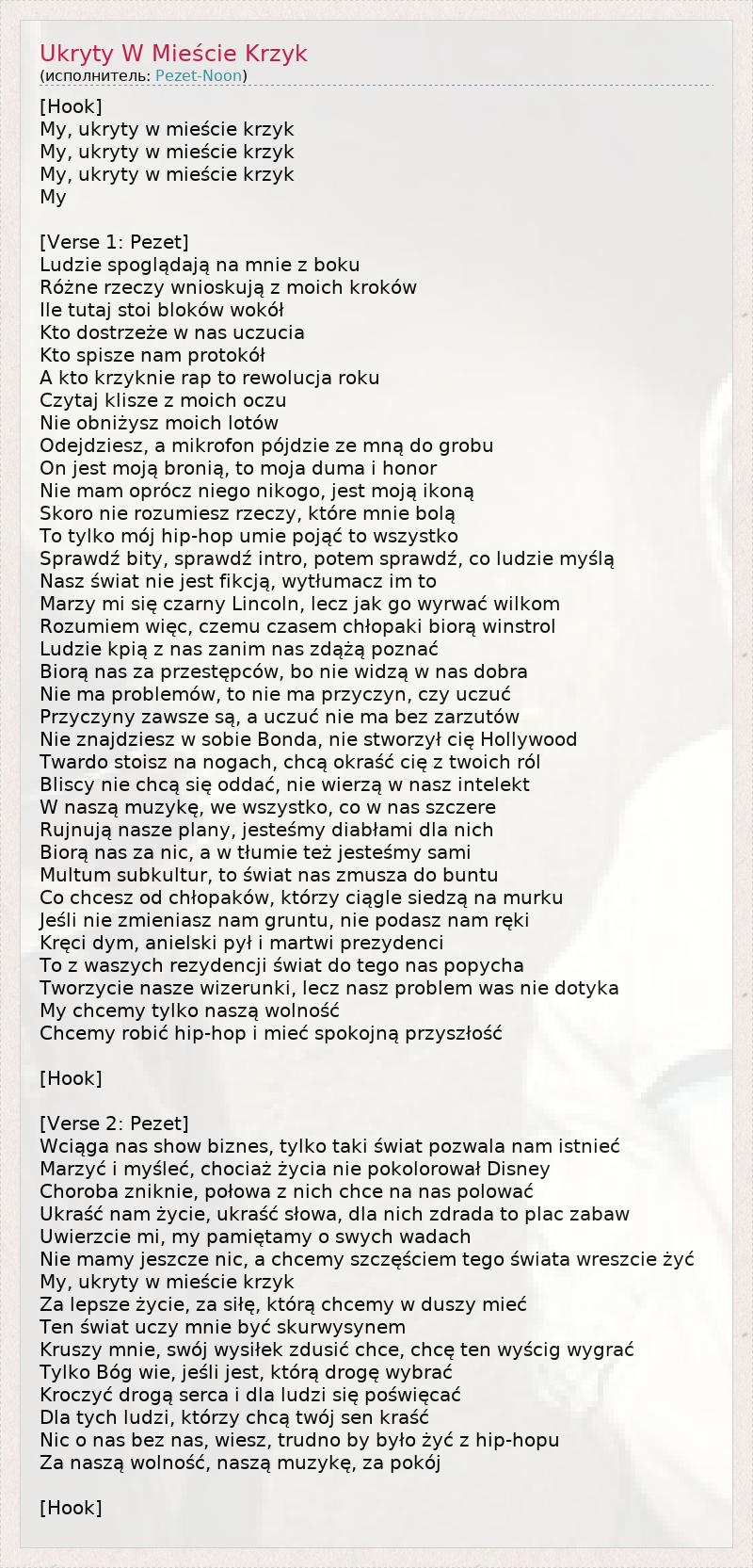 ГлавнаяИсполнителиPezet-NoonUkryty W Mieście Krzyk