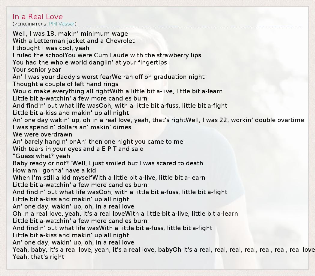 Oh in a real love, yeah, it's a real loveWith a little bit a-live, little bit a-learn