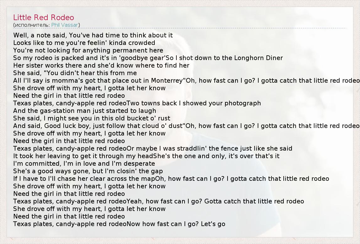 А как ты думаешь, о чем песня "Little Red Rodeo" ?