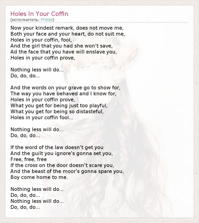 А как ты думаешь, о чем песня "Holes In Your Coffin" ?