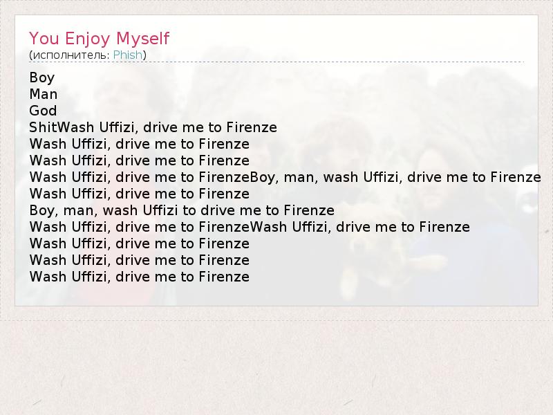 А как ты думаешь, о чем песня "You Enjoy Myself" ?