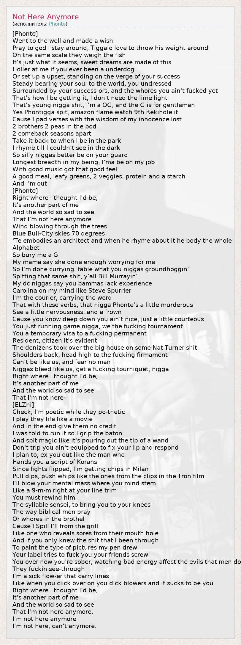 А как ты думаешь, о чем песня "Not Here Anymore" ?