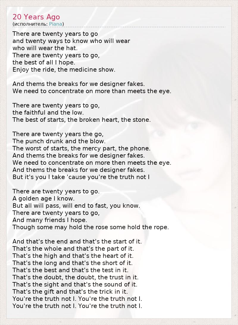 А как ты думаешь, о чем песня "20 Years Ago" ?