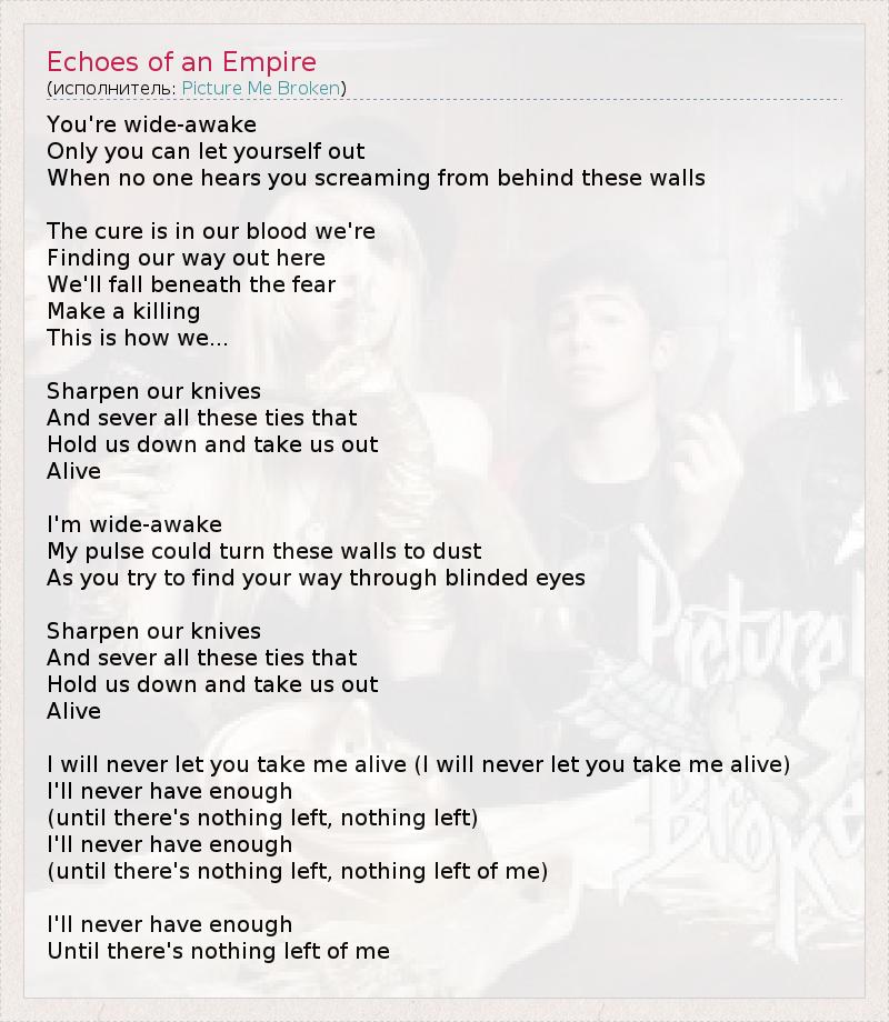 А как ты думаешь, о чем песня "Echoes of an Empire" ?