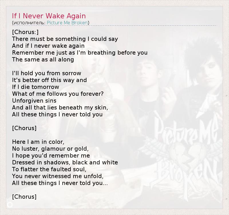 А как ты думаешь, о чем песня "If I Never Wake Again" ?
