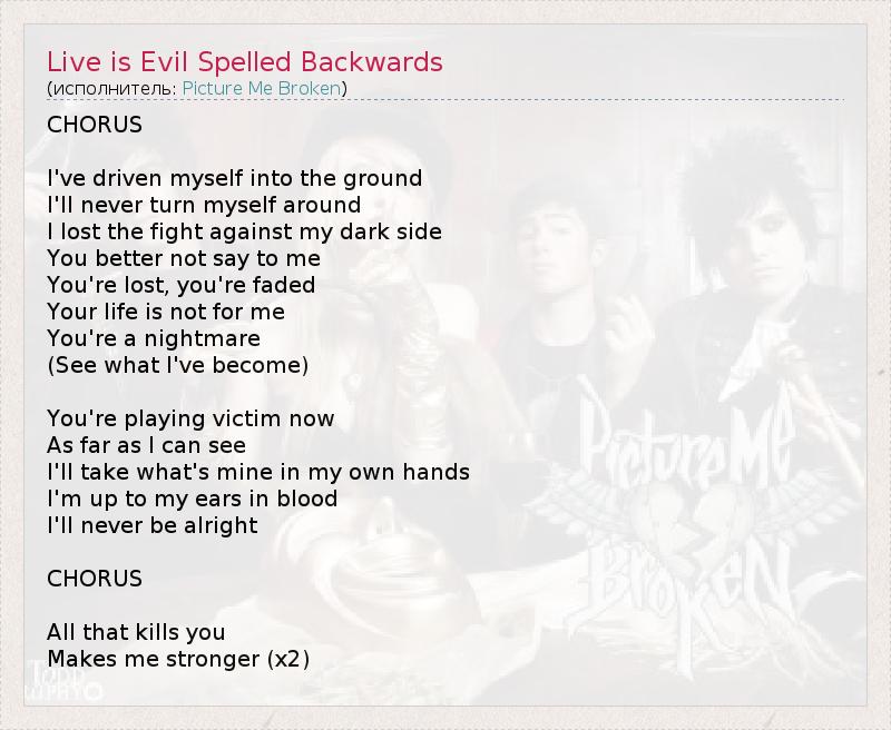 ГлавнаяИсполнителиPicture Me BrokenLive is Evil Spelled Backwards