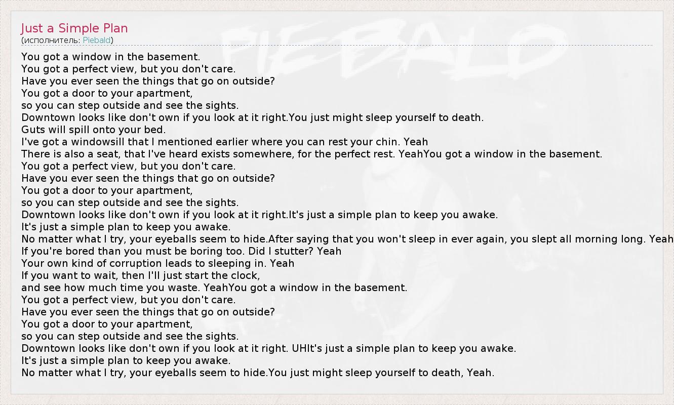 А как ты думаешь, о чем песня "Just a Simple Plan" ?