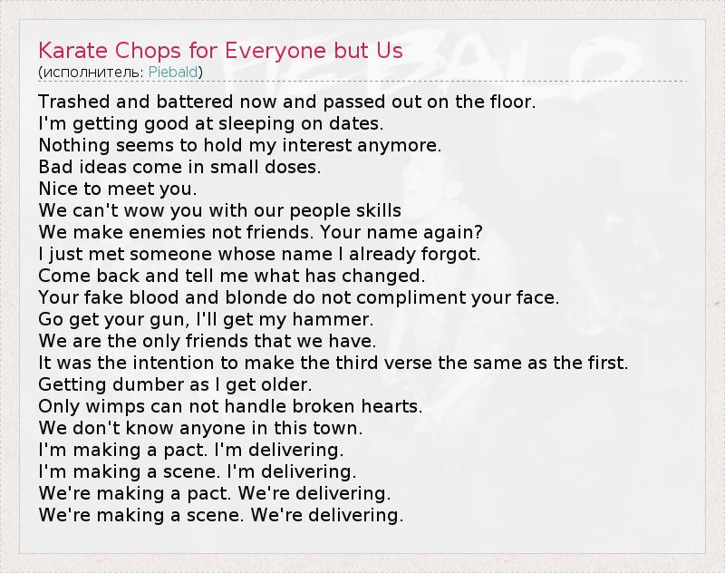 ГлавнаяИсполнителиPiebaldKarate Chops for Everyone but Us