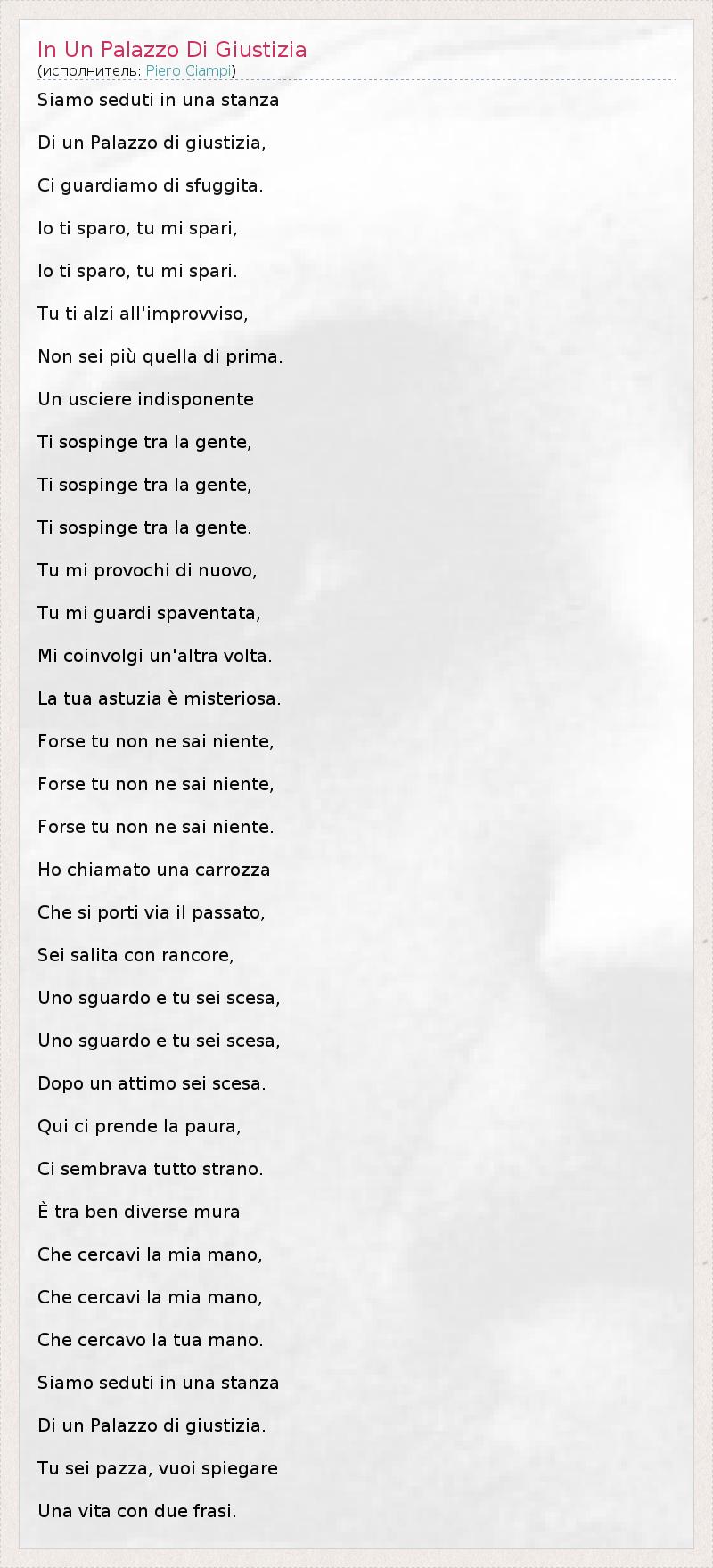 А как ты думаешь, о чем песня "In Un Palazzo Di Giustizia" ?