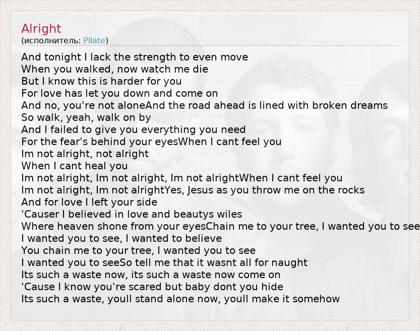 Im not alright, not alright