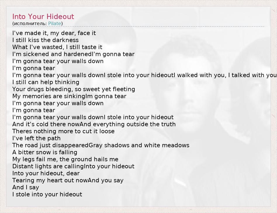 А как ты думаешь, о чем песня "Into Your Hideout" ?