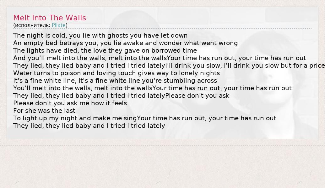 ГлавнаяИсполнителиPilateMelt Into The Walls